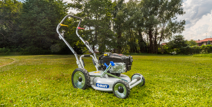 Grin PM46 monta il potente e affidabile motore a scoppio Briggs & Stratton serie 8.50 Serie Professional OHV - 190 cc con valvole in testa , ideale per condizioni difficili, intense e gravose: erba alta, bassa frequenza di manutenzione, grandi giardini, terreni accidentati, pendenze, verde pubblico, aiuole stradali e prati rustici.
