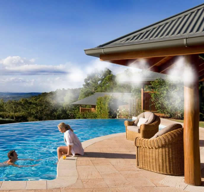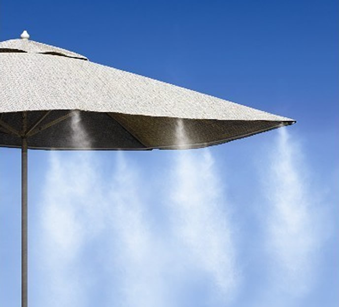 Sconfiggi l’afa con l’aria condizionata da esterno, che grazie ad una delicata pioggerellina che rinfresca ma non bagna, diminuisce la temperatura sulla tua terrazza o in giardino di quasi 10C°