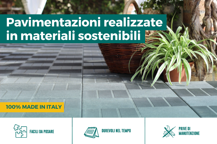 La pavimentazione giardino in plastica o legno è realizzabile attraverso mattonelle in plastica. Grazie alle piastrelle in plastica è possibile realizzare un pavimento per esterno in maniera semplice grazie moduli ad incastro autobloccanti. Le piastrelle in legno o plastica pvc per esterni sono utilizzabili anche nel terrazzo, nei garage, come bordo o sottofondo per le piscine gonfiabili, nei campeggi o come fondo dei box animali. Disponibili online anche le piastrelle flessibili e drenanti e le griglie ed i grigliati salvaprato e salvaghiaia carrabili. Completano la nostra gamma di pavimenti, l'erba sintetica, le quadrotte in legno di teak e i moduli per la creazione di giardini pensili, tutti prodotti in vendita la miglior prezzo.